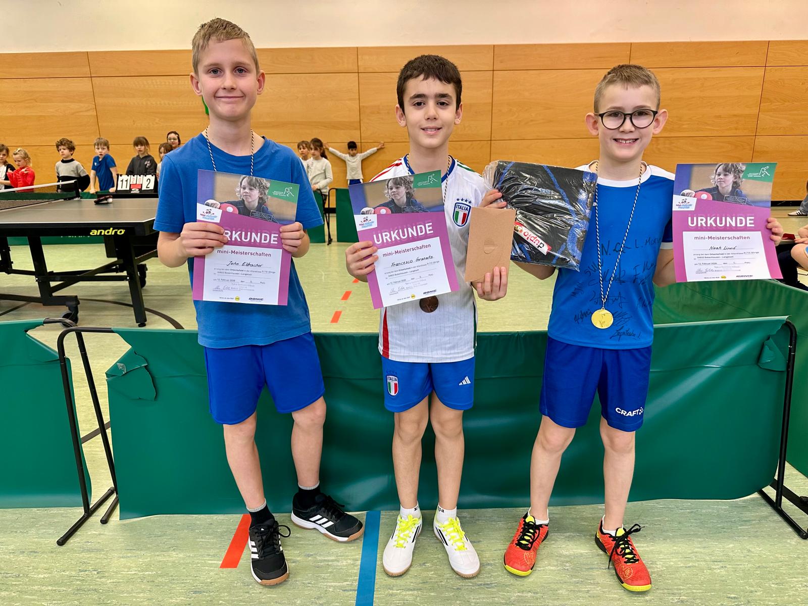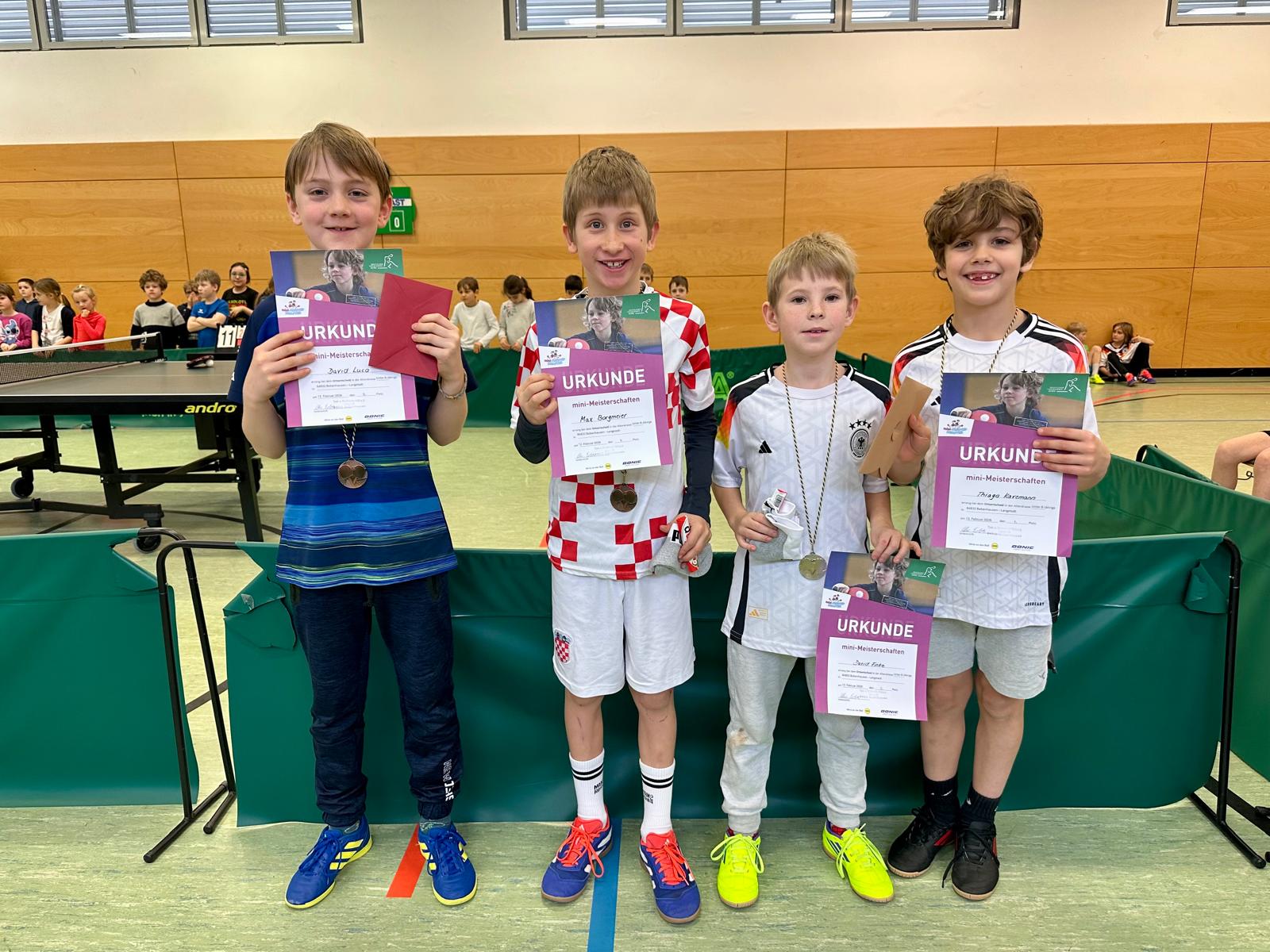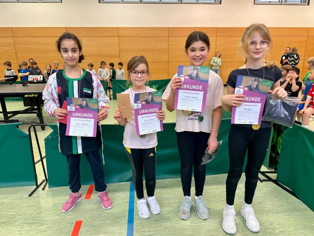 Wer sich beim Ortsentscheid – der ersten Stufe dieses vom Deutschen Tischtennis-Verband begleiteten Wettbewerbs – gut schlägt, darf im März beim Kreisentscheid der mini-Meisterschaften antreten. „Aus jeder der vier Gruppen kommen die ersten vier Kinder, also insgesamt 16 Sieger, weiter“, sagte Abteilungsleiterin Christa Erbes. Für die jeweils vier Erstplatzierten hat die Abteilung Medaillen, Preise und eine Urkunde bereitgestellt. Weiterhin haben alle Platzierten mit ihrer Urkunde, die als Eintrittskarte für ein Bundesligaspiel gilt – egal ob Damen oder Herren-Bundesliga, kostenlosen Eintritt hierzu.