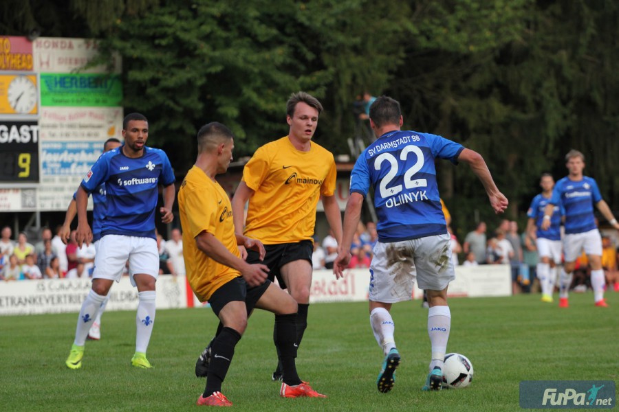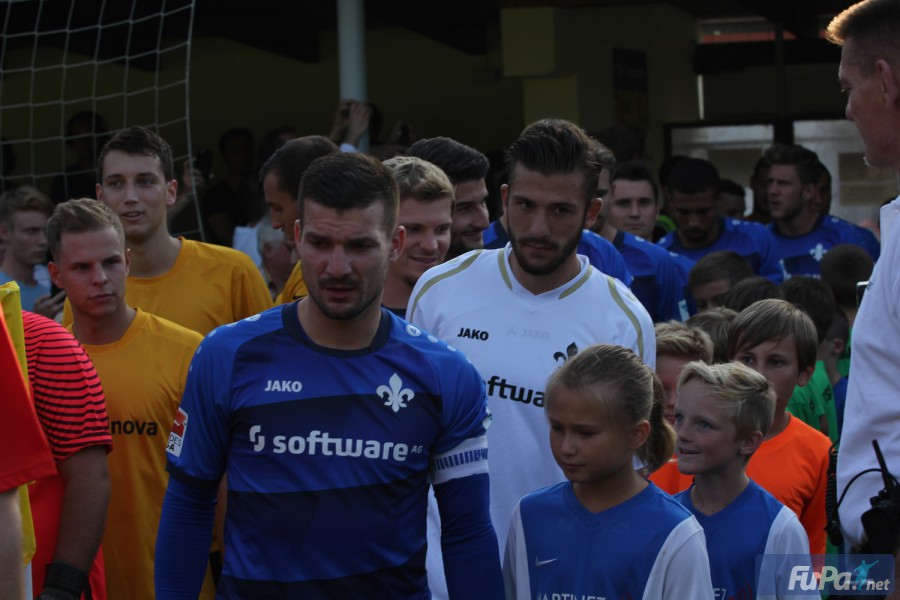Vor etwa 1000 Zuschauern fand das für den Verein großartige Ereignis des Testspiels gegen den Bundesligisten SV Darmstadt 98 gestern Abend statt. Für die Darmstädter entwickelte sich das Spiel schnell zu einer Trainingseinheit. Nichts desto trotz konnten die Langstädter die erste Chance im Spiel für sich erspielen. Guwara vertändelte gegen Michael Monath vor dem Strafraum den Ball und Torwart Daniel Heuer-Fernandes konnte gerade noch klären. Dies blieb dann aber auch die einzige nennenswerte Chance der Langstädter. In der 8. Minute war es dann Schipplock der den Torreigen der Darmstädter eröffnete. Bis zur Halbzeitpause folgten dann noch weitere 6 Treffer, sodass man mit 0:7 in die Pause ging. Nach der Pause wurde fast das komplette Langstädter Team durch die 1B Mannschaft ausgetauscht, damit alle Spieler des TSV einmal zum Einsatz kommen konnten. Doch das schnelle Spiel der Darmstädter verlangte den Langstädtern alles ab, und so schwanden deren Kräfte doch sichtbar. Weitere Treffer waren die Folge und so musste man am Schluß eine 0:16 Niederlage hinnehmen. Eine noch höhere Niederlage konnte der Langstädter Torwart Dominik Häfner verhindern, der einige Torchancen der Lilienspieler vereiteln konnte. Die Tore erzielten Schipplock (8.,29., 34., Foulelfmeter/43., 52. 57. Minute), Colak (13., 45., 54., 58., 60., 75. Minute), Jungwirth (27.), Oliinyk (47.) , Gorka (80.) und Ben-Hatira (90.)