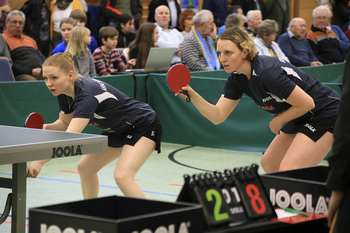 Nachdem beide Mannschaften bei der Begrüßung mit fünf bzw. sechs Spielerinnen angetreten sind, durfte man gespannt sein, wie die Aufstellung nach den Doppeln aussehen wird. Bei Langstadt konnte Janina Kämmerer, aufgrund einer starken Erkältung und Spielverbot von Seiten des Arztes nicht antreten. So startete man mit den Doppeln Bundesmann/Busemann und Neumann-Reckziegel/K. Segeth (aus der 2. Mannschaft). Beide Doppel konnten ihre ersten zwei Sätze gewinnen, ehe Offenburg das Blatt drehte und jeweils die nächsten zwei Sätze gewann. Nun mussten beide Doppel in den entscheidenden fünften Satz. Während Bundesmann/Busemann diesen mit 11:6 gewinnen konnte, wurde es am Nachbartisch spannend. Doch mit 11:9 behielten die Langstädterinnen die Oberhand. Jetzt wurde taktiert und Langstadt stellte im Einzel Anna Jansen (2. Mannschaft) an Position vier. Bei Offenburg war die mit angereiste Luisa Säger verletzt, sodass die Oberligaspielerin Melanie Hug antrat. Anna Bundesmann spielte großartig gegen Heuberger und gewann klar mit 11:5, 11:6 und 11:7. Schwierigkeiten hatte S. Busemann, die gegen Tetyana Maksimenko mit 0:3 Sätzen verlor. Im hinteren Paarkreuz konnte C. Neumann-Reckziegel gegen die Oberligaspielerin Hug ihre Routine ausspielen und mit 3:0 Sätzen gewinnen. Anna Jansen zeigte, dass sie nach ihrer langen Verletzung in aufsteigender Form ist, und konnte Lehmann zumindest bei der 1:3 Niederlage einen Satz abnehmen. Anne Bundesmann gewann dann ihren ersten Satz gegen Maksimenko souverain mit 11:6 und führte auch im zweiten schon 10:6, ehe Maksimenko Punkt um Punkt machte, und am Ende den zweiten Satz noch mit 13:11 für sich entschied. Von der Vergabe dieser Führung anscheinend noch geschockt, lief bei Anna nichts mehr und sie musste die nächsten zwei Sätze klar mit 4:11 und 4:11 abgeben. Von den wieder 110 anwesenden Zuschauern angefeuert, konnte Sonja Busemann ihren ersten Satz mit 11:9 gegen Heuberger für sich entscheiden, den zweiten und dritten gewann diese dann mit 11:7 und 11:5. Danach brach eine Verletzung bei Heuberger wieder auf und sie musste eine 10-minütige Verletzungpause nehmen. Doch auch danach steckte die Offenburgerin nicht auf und Sonja musste alles aufbieten um den vierten mit 11:5 und den Entscheidungssatz mit 12:10 unter tosendem Applaus zu gewinnen.