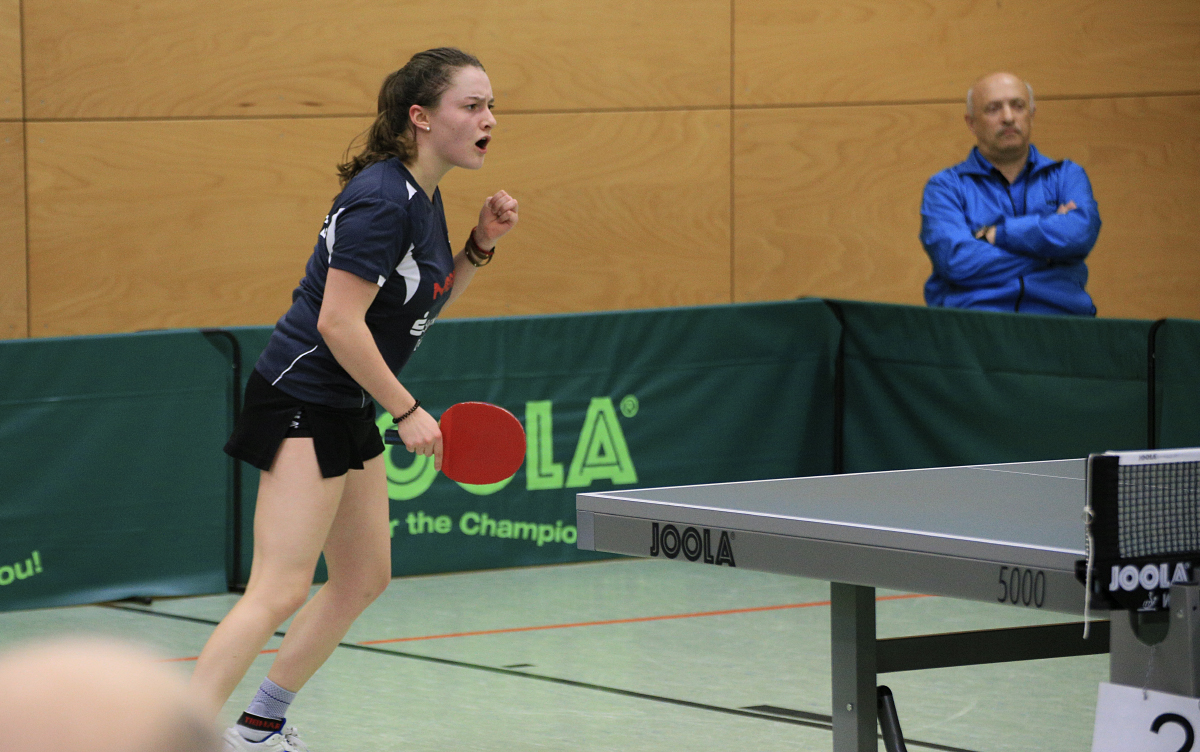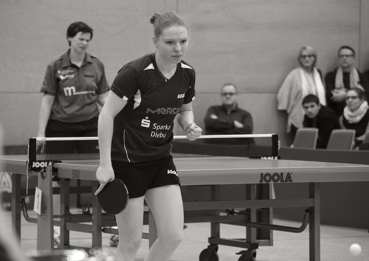 C. Neumann-Reckziegel und Anna Jansen hatten es jetzt auf dem Schläger, den Siegpunkt zu erzielen. Neumann-Reckziegel konnte zwar im ersten Satz mit 5:0 in Führung gehen, aber Lehmann holte auf und gewann das Spiel in 3 Sätzen. Jetzt hieß es für Anna die Nerven zu behalten. Ihr Abwehrspiel lag Hug nicht und Anna kämpfte um jeden Punkt. Am Ende gewann sie ihr Spiel mit 3:0 Sätzen, was für Langstadt den wichtigen Sieg um den Klassenerhalt bedeutete.