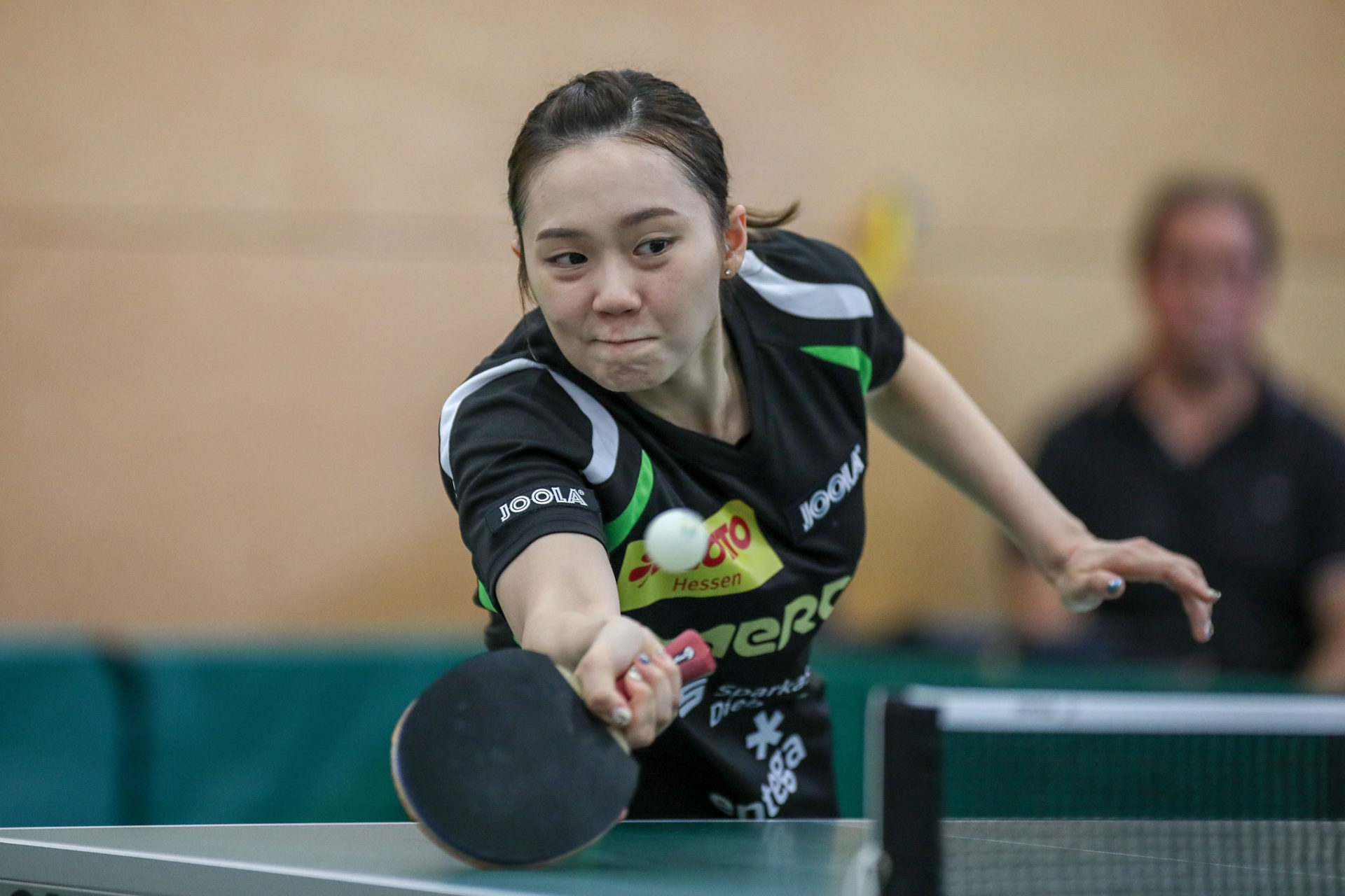 Böblingen hat mit Quianhong Gotsch die beste Spielerin der vergangenen Saison in ihren Reihen. Warum sie nur schwer zu bezwingen ist, zeigte sie dann gleich im ersten Einzel gegen Cheng Hsien-Tzu. Nahezu jeden Ball von Cheng fischte „Hongi“ weit hinter dem Tisch wieder zurück. Die Taiwanesin spielte wahrlich nicht schlecht, musste aber am Ende die Überlegenheit der Gegnerin anerkennen.