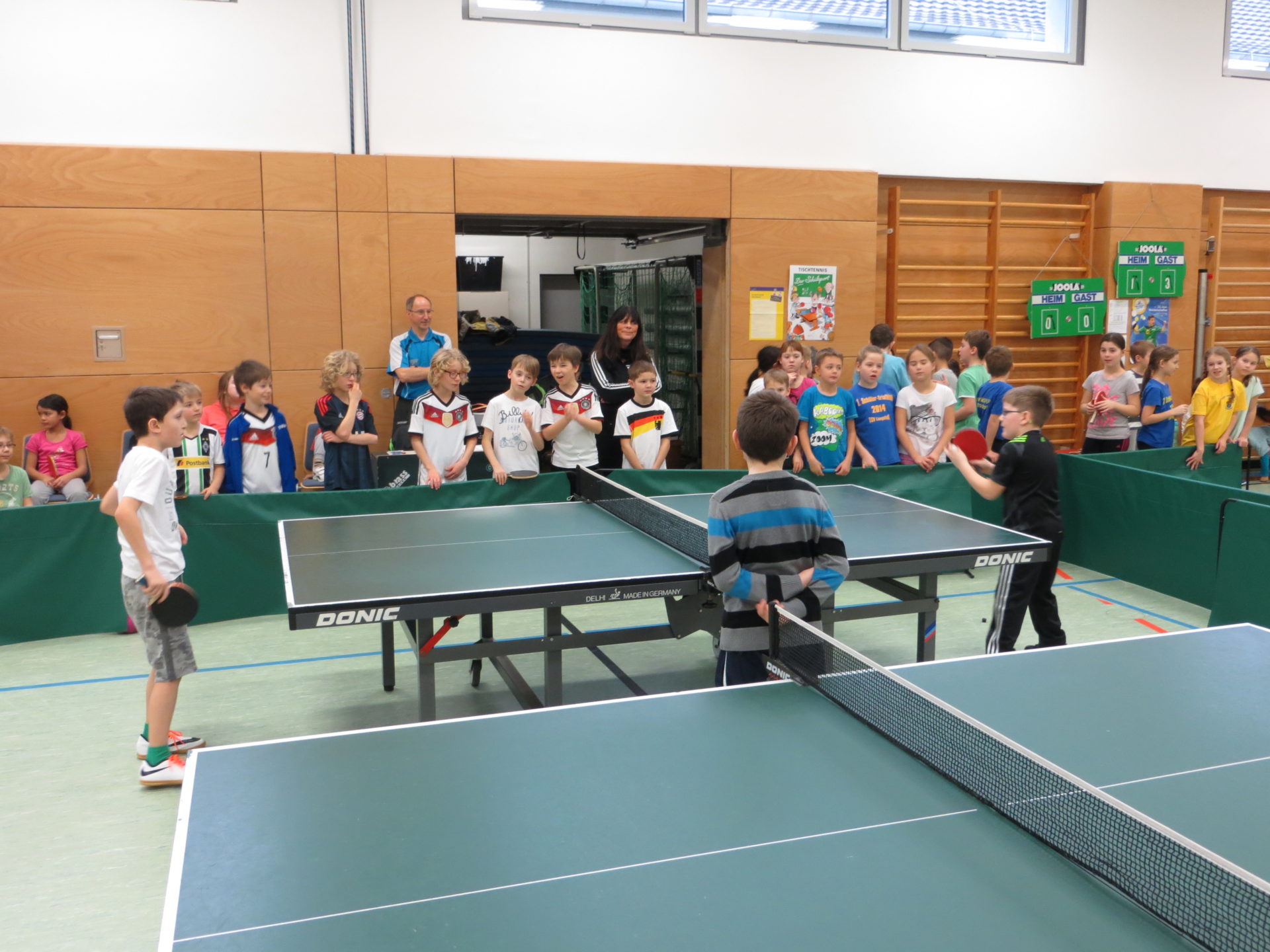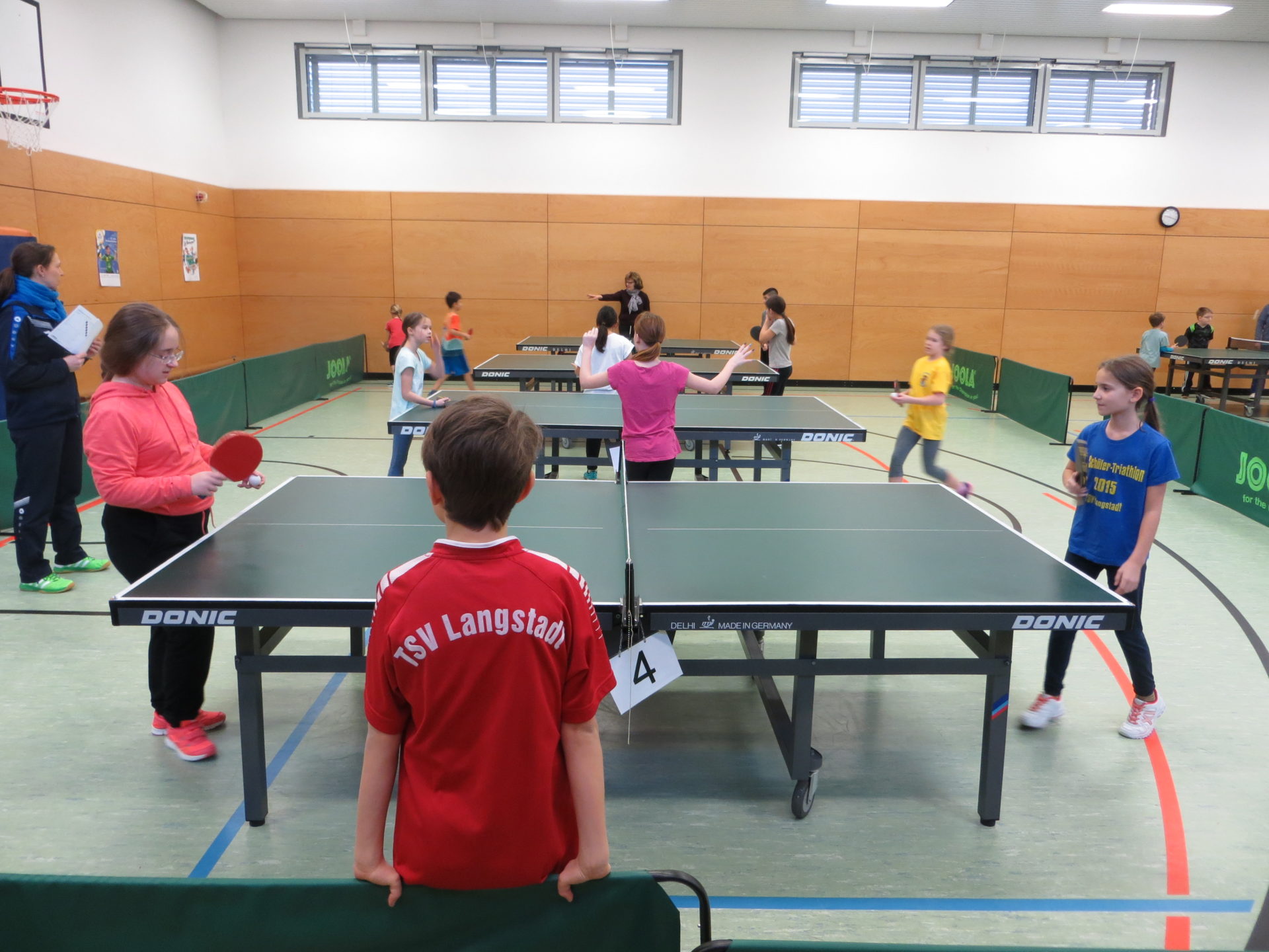 Insgesamt waren am Donnerstag in der Markwald-Sporthalle über 60 Mädchen und Jungen am Start. Die „minis“ zeigten in drei Altersklassen unter den Augen ihrer Lehrerinnen der Markwald-Grundschule Langstadt und den Helfern des TSV Langstadt sehenswerte Ballwechsel. Es war eine großartige Veranstaltung, die Kinder kämpften den ganzen Vormittag darum, viele Spiele zu gewinnen, zeigten sich aber auch als faire Verlierer und hatten eine Menge Spaß am Tischtennisturnier. Eine tolle Siegerehrung beendete das Turnier, das an 12 Tischtennis-Tischen gut durchorganisiert wurde. Urkunden und kleine Sachpreise bekamen alle teilnehmenden Minis überreicht und die eingesetzten Schüler/innen des Vereins, die als Schiedsrichter fungierten, bekamen ein Extralob!
