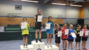 Auch am Sonntag reisten mit Moritz Kaffenberger bei den C-Schülern und Jil Rosenthal bei der weibl. Jugend zwei Nachwuchsspieler an. Moritz hatte sich das erste Mal für diese Meisterschaften qualifiziert und er spielte ein gutes Turnier. Bei zehn Spielen konnte er dreimal als Sieger vom Tisch gehen und hatte auch noch in einigen anderen Spielen die Chance zu gewinnen. Am Ende hieß es für ihn, einen tollen 8. Platz bei 11 Teilnehmern erreicht zu haben. Jil musste bei 12 Teilnehmerinnen 11 Spiele an diesem Tag absolvieren. Mit 4:0 Siegen in Folge, bei nur einem Satzverlust, lief es bei ihr klasse. Im fünften Spiel war die Gegnerin die Damen-Hessenligaspielerin Julia Baligàcs. Hier hatte Jil mit 0:3 das Nachsehen. Auch im nächsten Spiel verlor Jil knapp im fünften Satz gegen Natalie Gliewe. Doch Jil konnte sich nochmals konzentrieren und fand zu ihrem Spiel zurück. In den letzten fünf Spielen gab sie nur noch eine Partie ab und wurde am Ende mit 8:3 Siegen Zweite der Ranglisten, was ein hervorragendes Ergebnis ist.