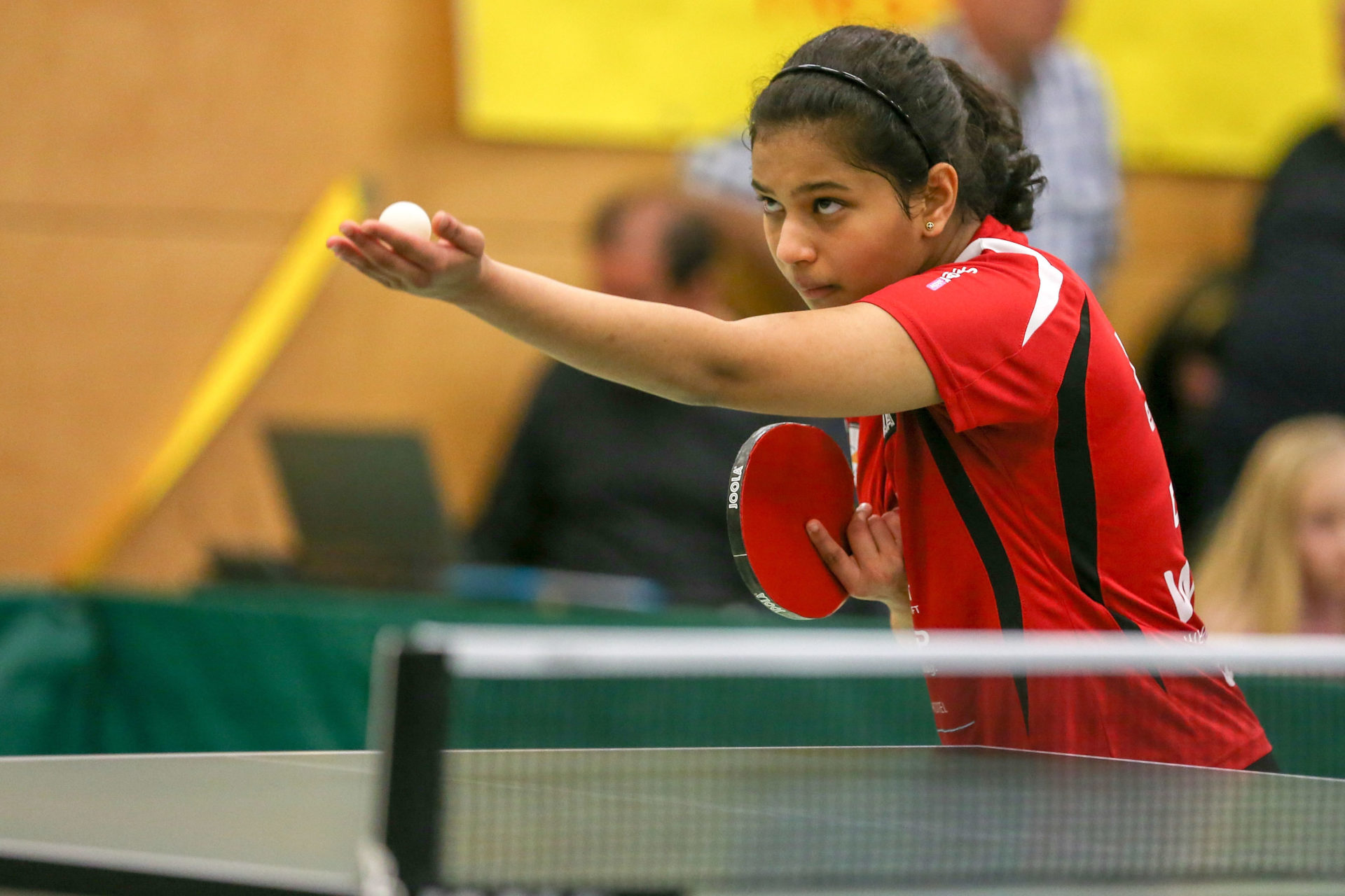 Anne Bundesmann hatte insbesondere in ihrem ersten Spiel gegen Diya Chitale Möglichkeiten zum Sieg. Im zweiten Satz reichte eine 9:5 Führung nicht zum Satzgewinn. Nachdem sie dann den dritten und vierten Satz deutlich gewann, keimte Hoffnung auf, dass sie den vierten Punkt für Langstadt holen könnte. Leider lief der Entscheidungssatz nicht nach Wunsch und sie musste der letztes Jahr noch in Langstadt spielenden indischen Schüler-Nationalspielerin zum Sieg gratulieren. Direkt nach Spielschluss musste sie dann gegen Kathrin Mühlbach an den Tisch. Die 0:3 Niederlage fiel dann deutlich aus und so war die 3:6 Niederlage perfekt.