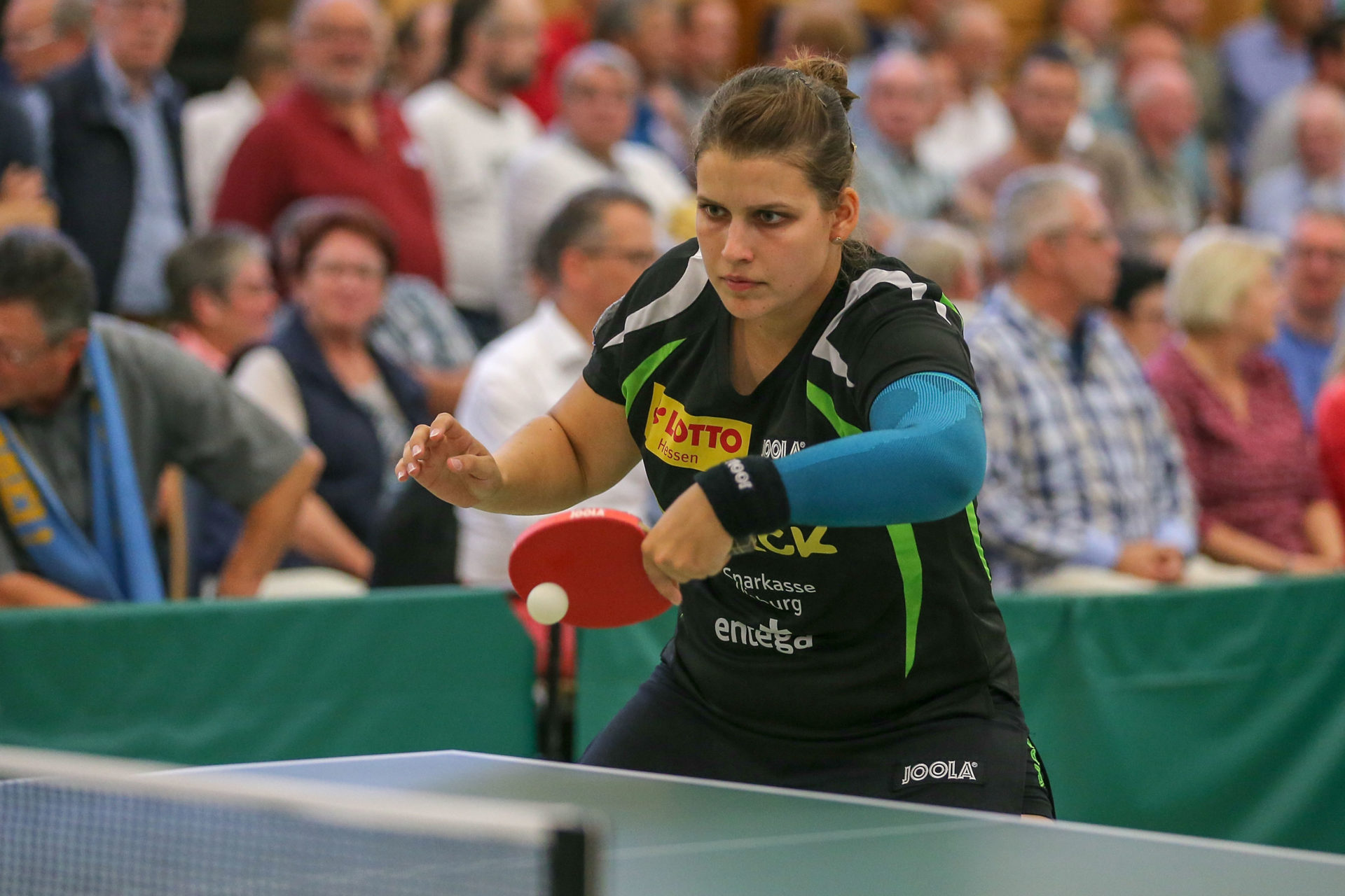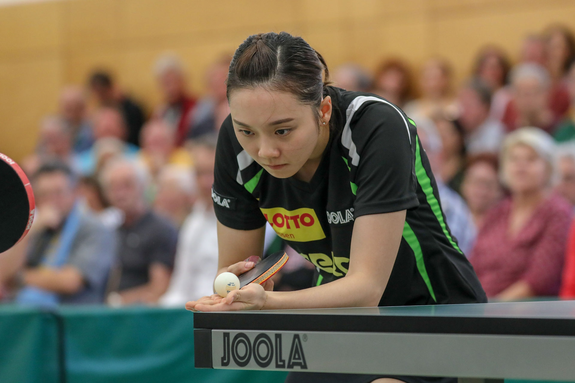 Was die 275 Zuschauer dann in der Folge bei den beiden Spitzenspielen zu sehen bekamen, war Tischtennis der Extraklasse. Petrissa Solja hatte gegen ihre Nationalmannschaftskameradin Kristin Lang den Sieg zum Greifen nah. Nachwechselnden Satzführungen hatte sie im Entscheidungssatz schon mit 6:0 vorne gelegen. Dann wurde Lang jedoch stärker und stärker. Sie spielte sehr hohes Risiko und das wurde letztlich belohnt. An ihre tolle Leistung gegen Bingen knüpfte Cheng Hsien-Tzu an. Zu einem echten Krimi entwickelte sich dabei der 4. Satz. Nach mehreren vergebenen Matchbällen und der Abwehr von einigen Satzbällen holte sich Cheng gegen Sabine Winter mit 23:21 den vierten Satz und gewann unter dem frenetischen Beifall der Zuschauer mit 3:1 Sätzen gegen die deutsche Nationalspielerin. So ging es mit einem 2:2 in die Pause.