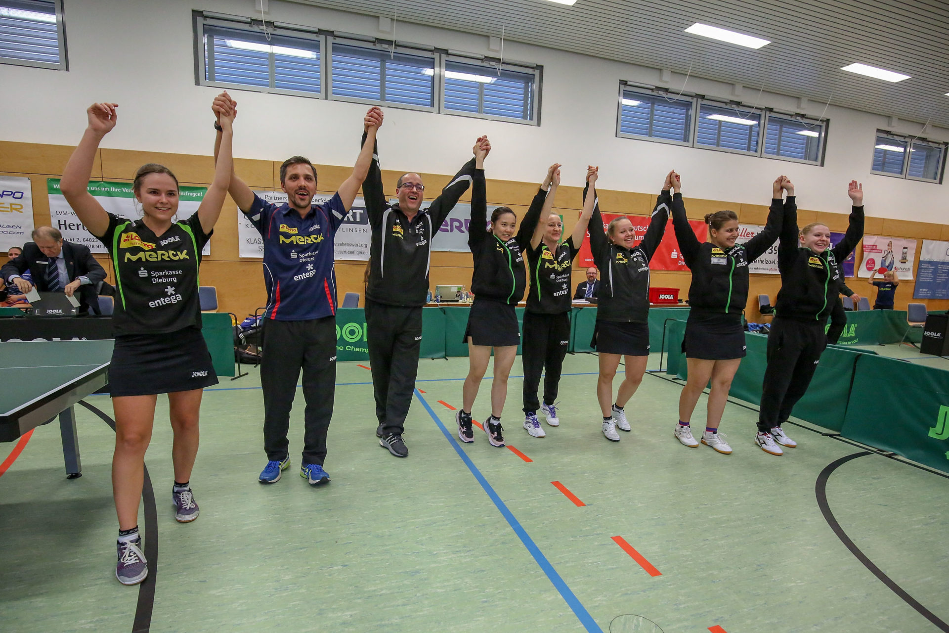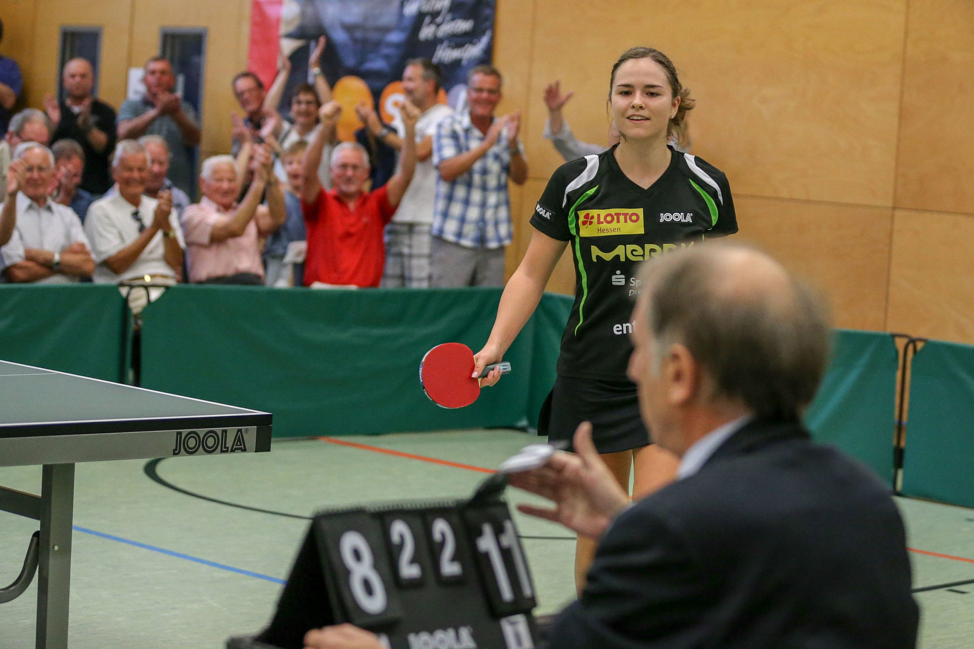 In der Pause zeigte sich auch der anwesende Präsident des Deutschen Tischtennisbundes Michael Geiger von der Atmosphäre in der Langstädter Halle begeistert. „Die Stimmung ist wirklich prächtig. Es ist toll zu sehen, was Langstadt als Aufsteiger in die Bundesliga hier auf die Beine gestellt hat“.