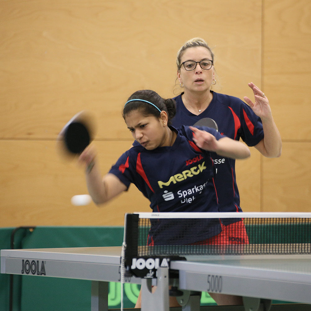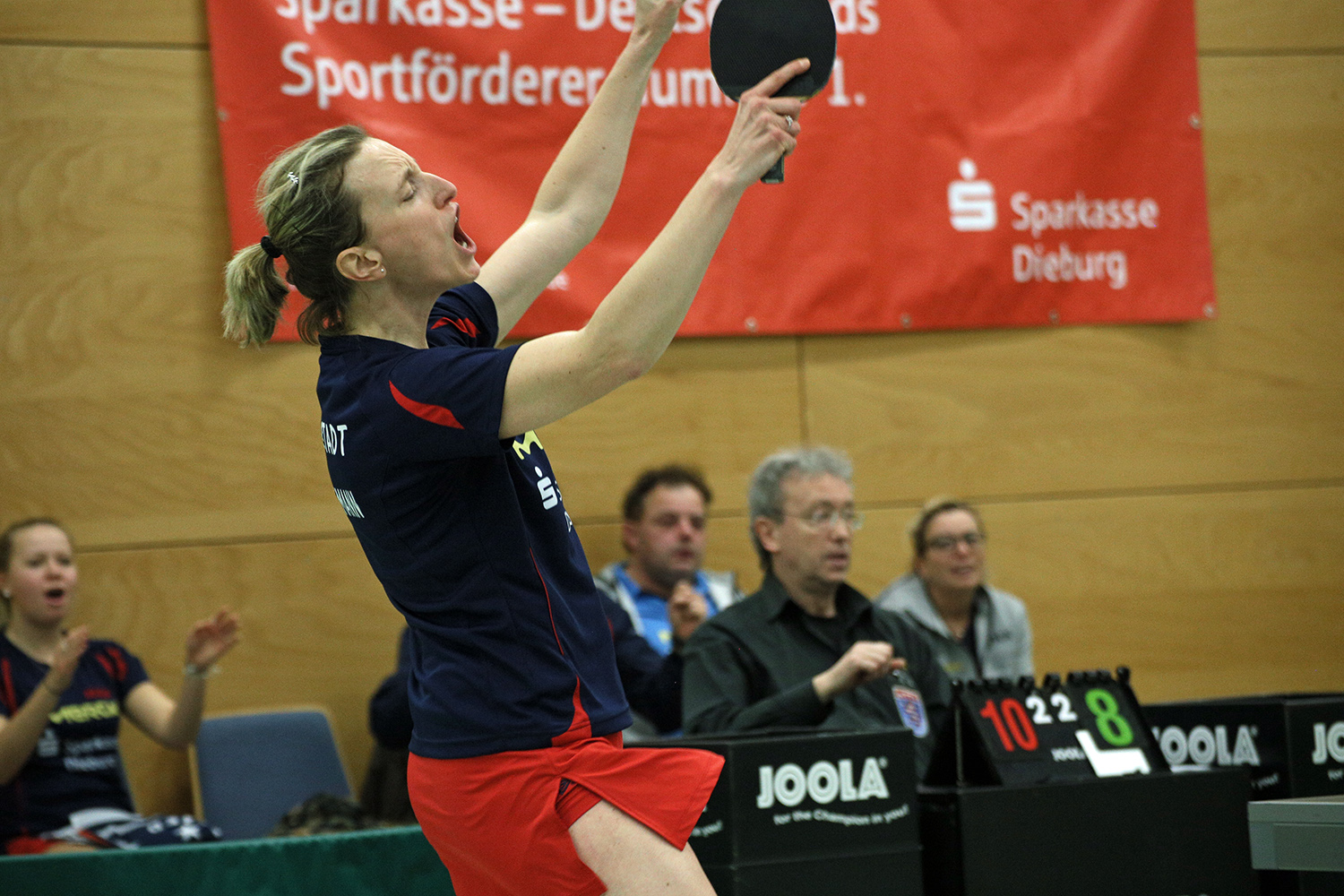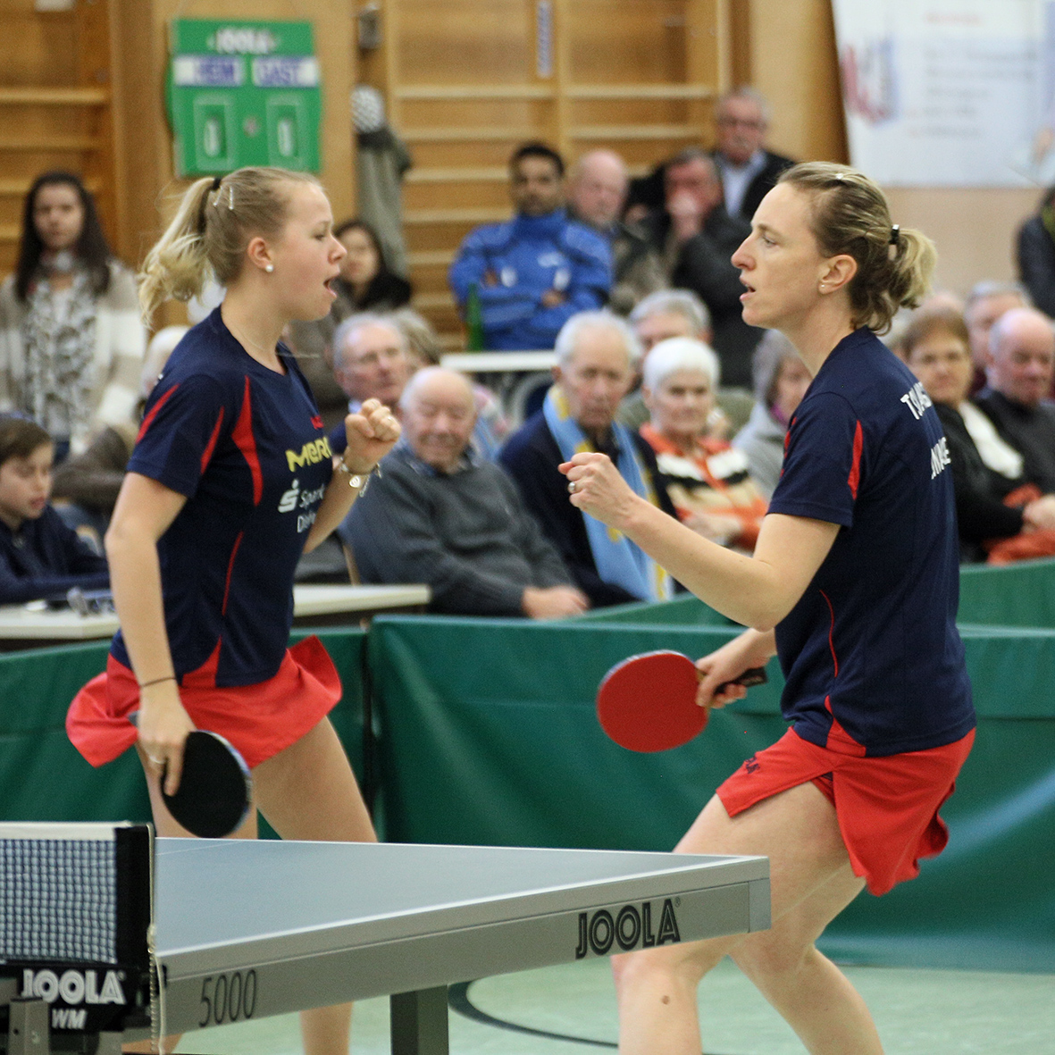 Nach den Doppeln stand es 1:1. Endlich gelang dabei auch Sonja Busemann/Janina Kämmerer wieder ein Erfolg. Mit 11:9 im 5. Satz hatten sie die besseren Nerven als die Gegnerinnen. Diya Chitale/Kerstin Segeth verloren zwar mit 1:3 Sätzen hatten aber auch durchaus Chancen auf ein besseres Ergebnis.