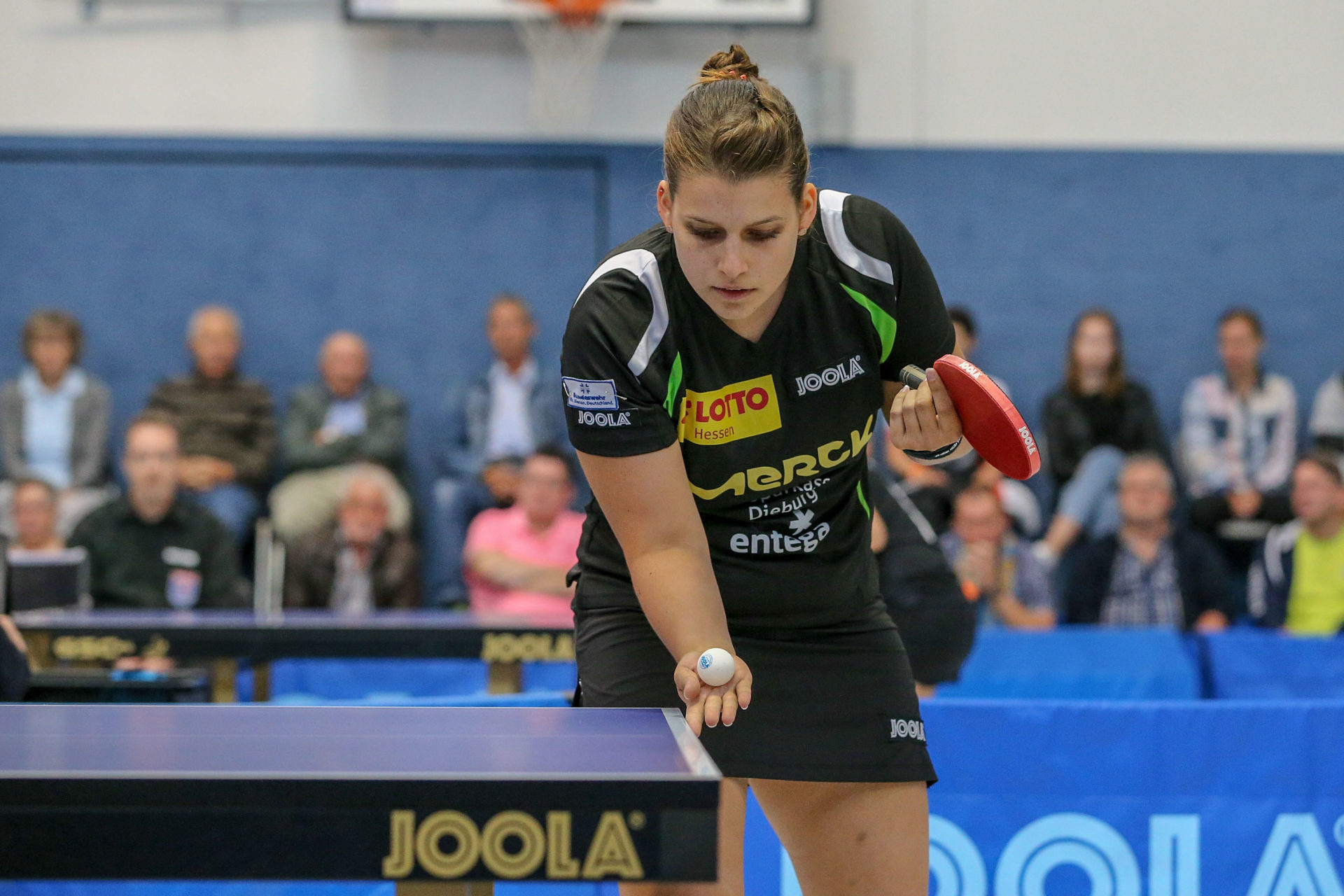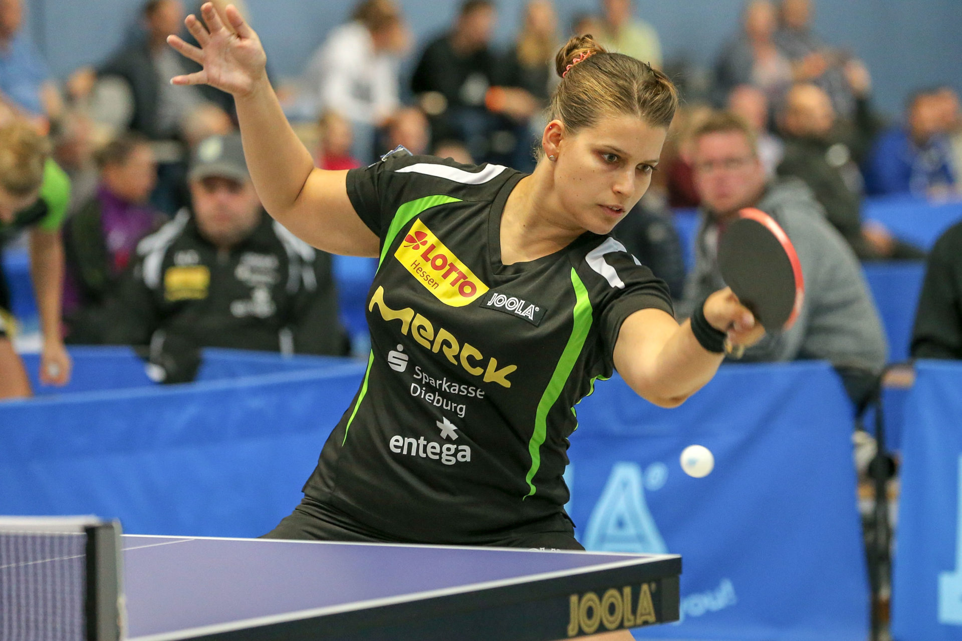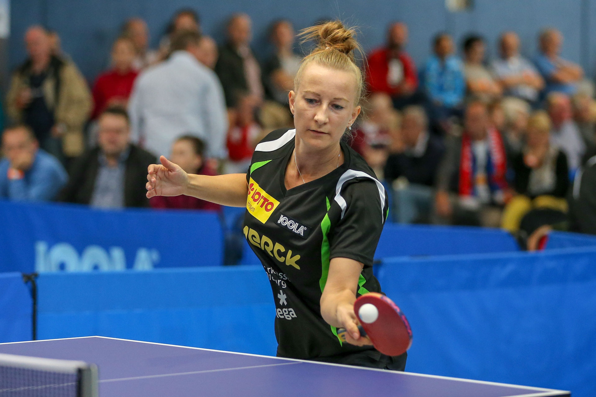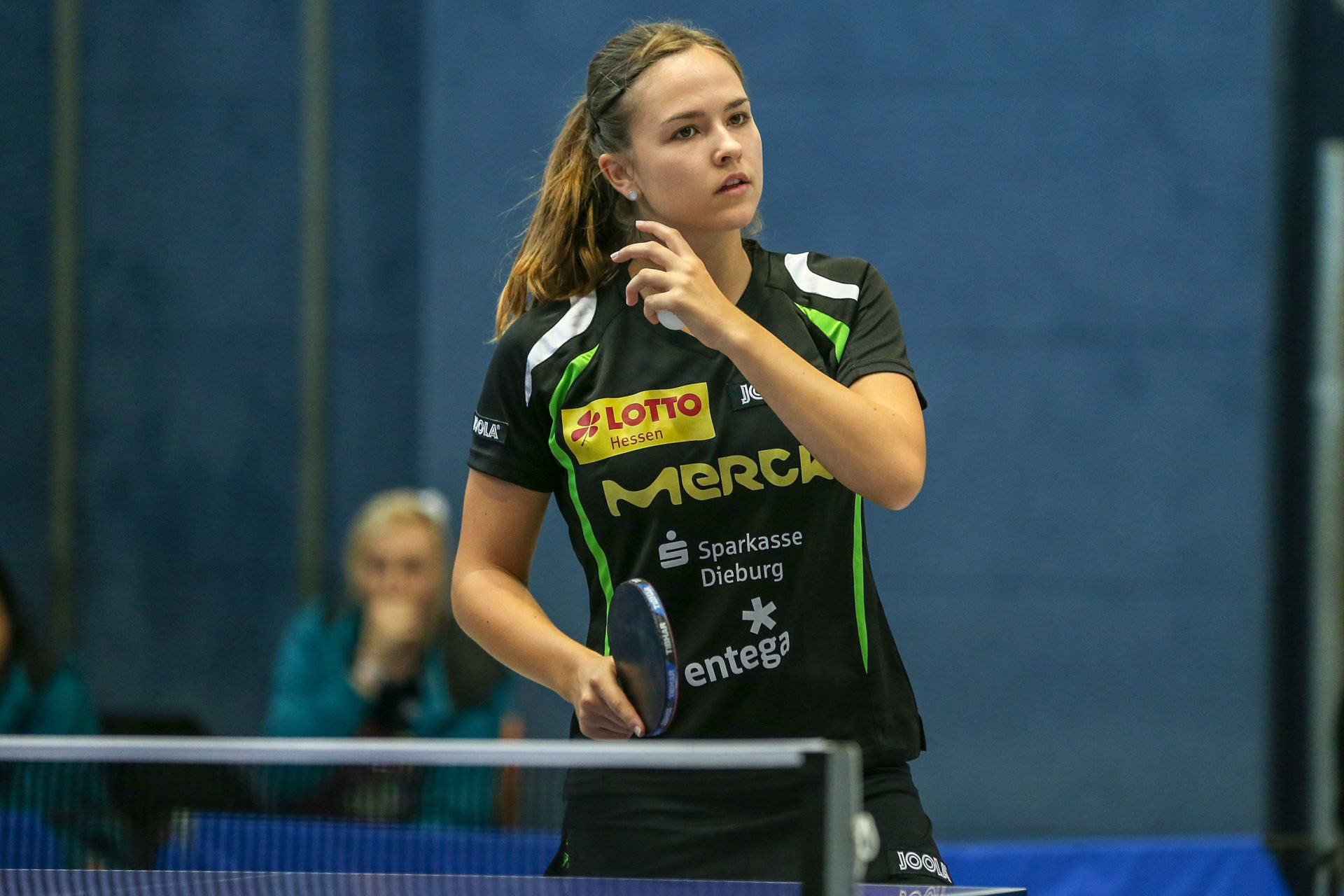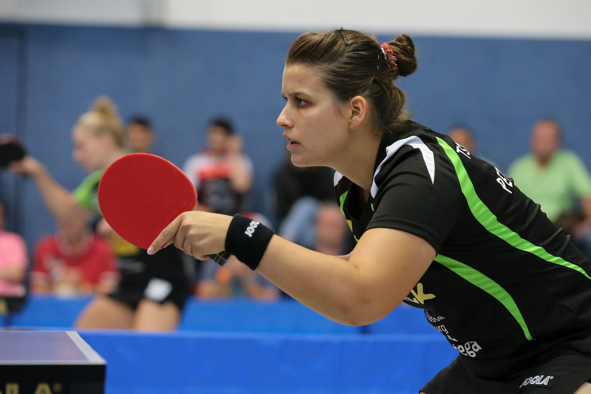 Zu ihrem ersten Einsatz im Langstädter Trikot kam Neuzugang Petrissa Solja. Und sie zeigte gleich welche Klasse sie hat. Mit einem ungefährdeten 3:0 Erfolg gegen die walisische Nationalspielerin Charlotte Carey führte sie sich super ein. „Obwohl ich etwas angespannt war, bin ich mit meinem Erfolg sehr zufrieden“, resümierte Peti nach ihrem ersten Spiel.