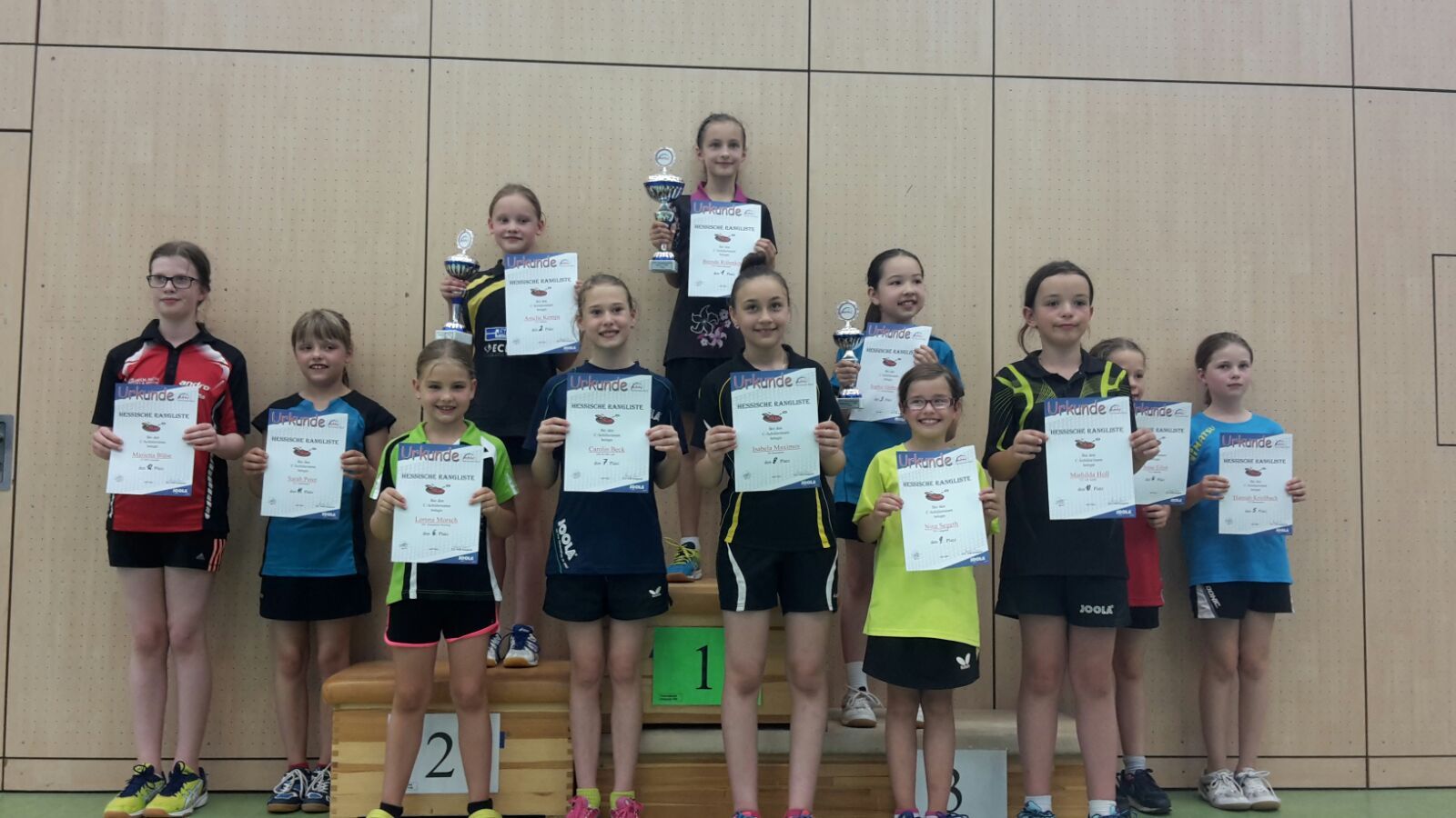 Den Altersunterschied sieht man auch ganz deutlich auf dem Bild. Nina kann noch zwei weitere Jahre bei den C-Schülerinnen an den Start gehen und wird sicher bei den nächsten Turnieren noch den ein oder anderen Platz nach vorne machen. Die Abteilung gratuliert recht herzlich zum Erfolg.