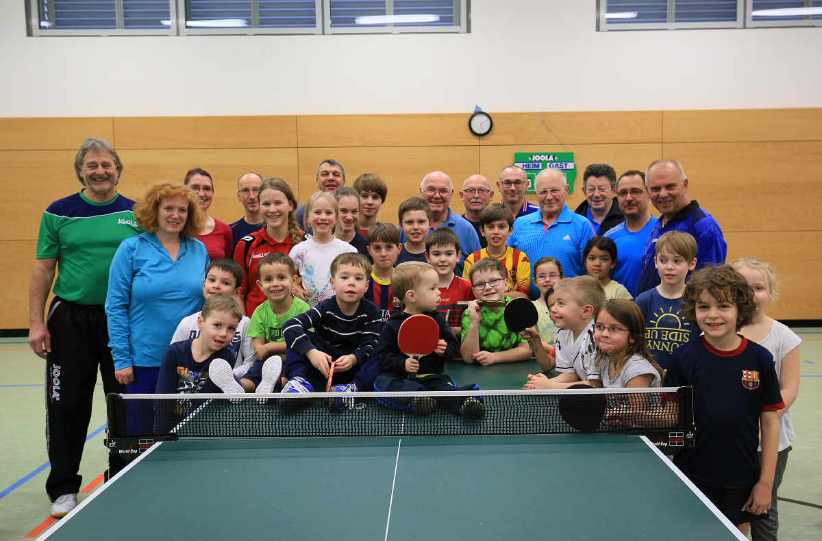 Im Dienstagtraining unseres Vereins fand diese Woche ein besonderes Ereignis statt. Unser Trainingsplan ist so gestaltet, dass sich das Training der Gruppe „Drei Generationen an einem Tisch“ mit dem Nachwuchstraining überschneidet. Deshalb passiert es schon öfters, dass man generationenübergreifend einen Trainingspartner zugewiesen bekommt, mit dem man sich sportlich messen kann. Dabei kam die Idee auf, in einem extra angesetzten Wettkampfturnier zu testen, wie gut unsere Nachwuchsspieler mit ihrer jugendlichen Unbekümmertheit gegen die Senioren der Gruppe bestehen können.