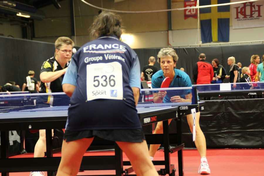 Heute standen dann die Spiele der Endrunde im Doppel an. Kerstin und Conny starteten stark und gewannen ihr Spiel mit 3:1 gegen zwei Tschechinnen. Im nächsten Spiel war dann leider Schluß gegen Ingrid Jacobs und Anja van den Berghe aus Belgien. Sie verloren mit 3:1. Bei Manu und Cordula lief es im ersten Spiel der KO-Runde ebenfalls gut. Mit 3:1 gewannen sie gegen die Doppelpaarung aus Kroatien und Norwegen. Doch auch bei ihnen waren die Gegnerinnen im nächsten Spiel zu stark. Mit 3:0 verloren sie gegen Elena Hunikhina und Larisa Lavrukhina aus Rußland. Am Ende blieb beiden Doppeln ein gutes Ergebnis mit einer Platzierung unter den besten 16 Doppelpaarungen.