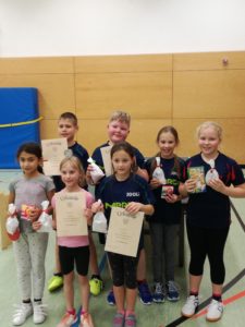 Bei den Anfängern gingen 6 Kindern an den Start. Unterstützt von den Trainern der TT-Abteilung absolvierten die Kinder verschiedene Stationen rund um den Tischtennissport. Vereinsmeisterinnen wurden punktgleich Tina Rößner und Giulia Stagno vor Lias Grimm, der den 2. Rang belegte. Den 3. Platz teilten sich Sofia Eg und Laura Törl vor Josia Diehl.